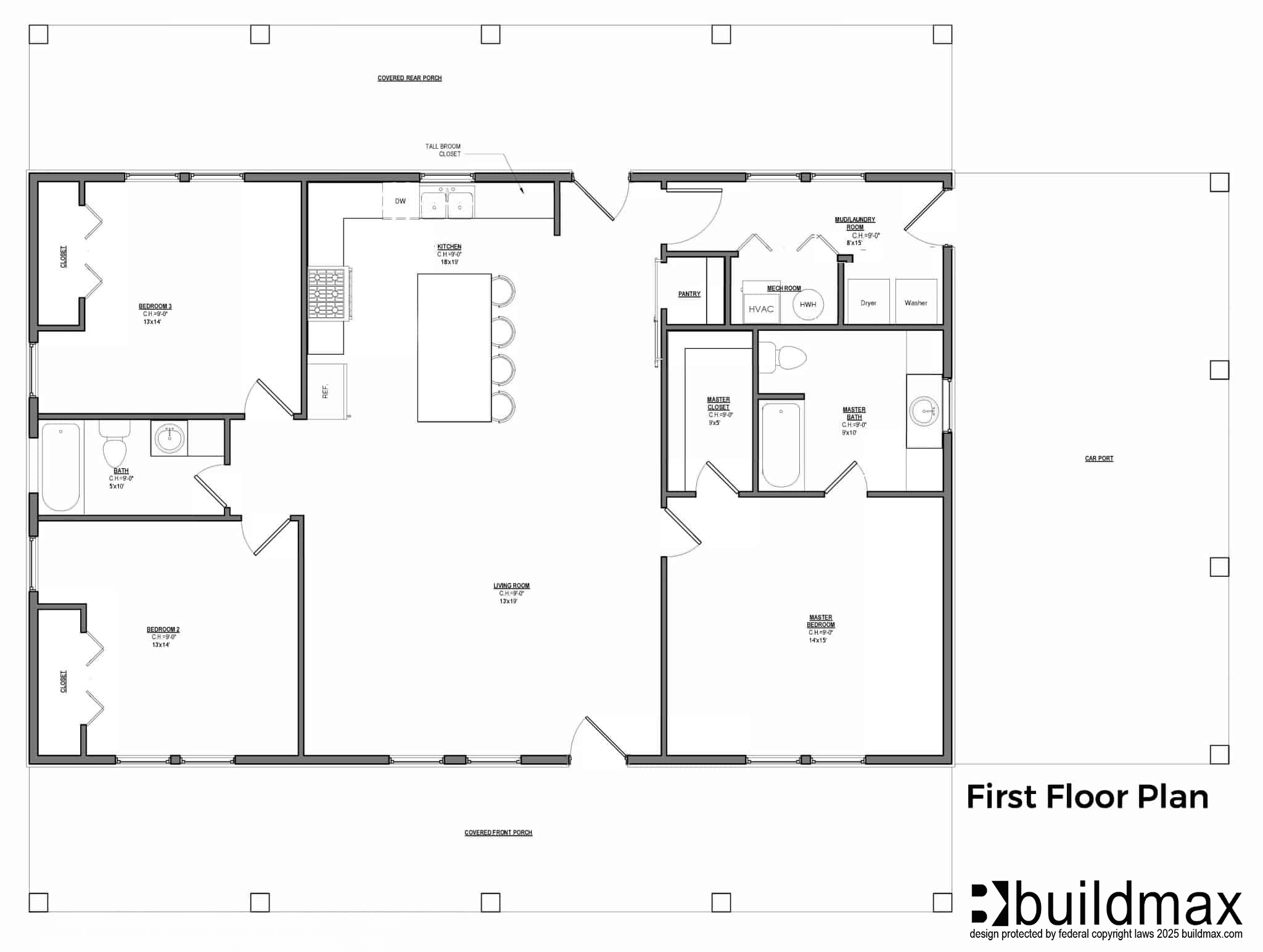 All house plans on buildmax.com were designed to accommodate the local codes and requirements at the time & location the original house was designed, these may not fall directly in line with your local regulations, and it is your responsibility to follow up with your local building department to ensure compliance is accomplished. Photo and video renditions may differ from the actual plans based on many factors, including truss layout, exterior and interior finishes. All stock, custom or modified plan purchases are final, and we cannot refund or exchange any plan after date of purchase.