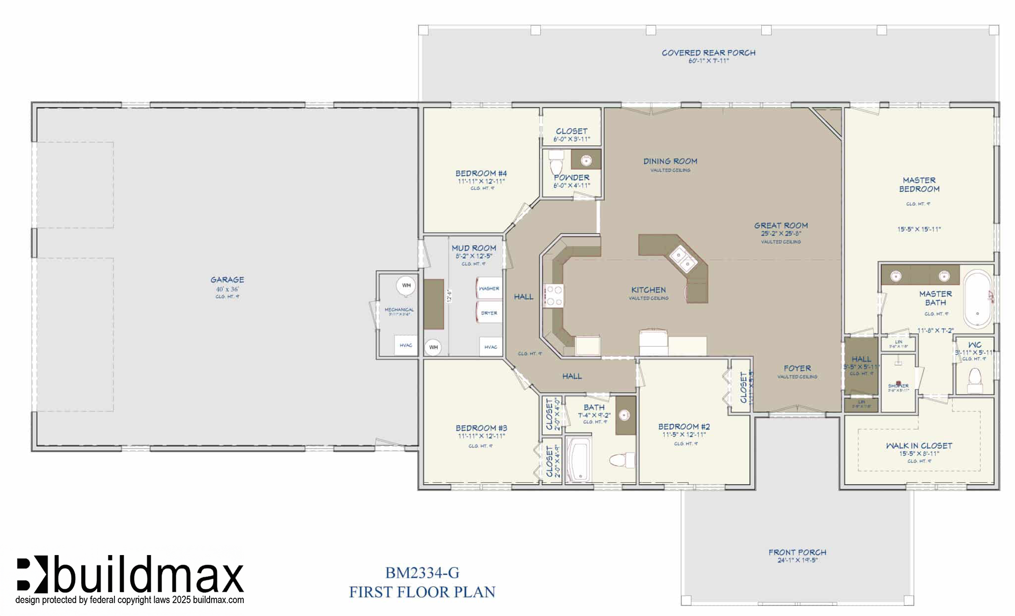 All house plans on buildmax.com were designed to accommodate the local codes and requirements at the time & location the original house was designed, these may not fall directly in line with your local regulations, and it is your responsibility to follow up with your local building department to ensure compliance is accomplished. Photo and video renditions may differ from the actual plans based on many factors, including truss layout, exterior and interior finishes. All stock, custom or modified plan purchases are final, and we cannot refund or exchange any plan after date of purchase.