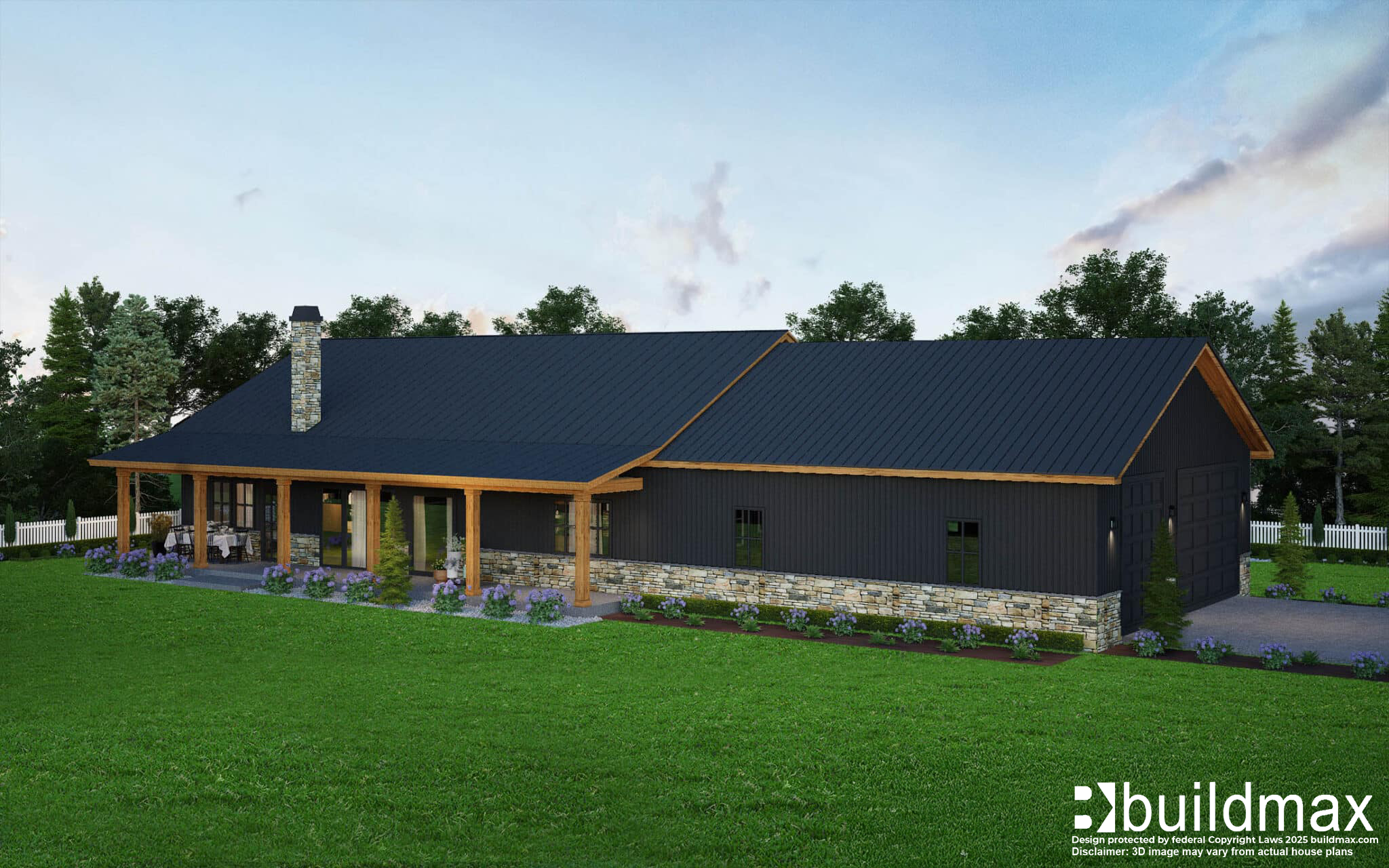 This barndominium is a 4 bedroom, 2 and a half bath plan with an attached 3-car garage. The master suite is a retreat with a spacious walk-in closet. The great room has open sightlines to the spacious kitchen. With 3 other bedrooms, you’ll be sure to have plenty of space. The mudroom/laundry room leads to the 3-car garage. This barndominium can be built using a metal building kit, post frame kit, or a conventional wood frame kit giving you a total pricing advantage no matter what market you are in.