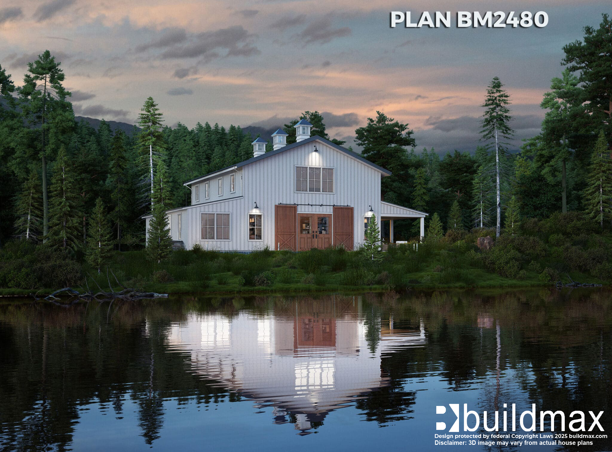 This barndominium plan is a 4 bedroom, 2.5 bath barndo. This lakeside barndominium features a large master suite on the first floor, complete with a sizeable bathroom and a large walk-in closet. The second floor features 3 bedrooms and a sizeable loft that offers plenty of flexible space. This barndominium can be built using a metal building kit, post frame kit, or a conventional wood frame kit giving you a total pricing advantage no matter what market you are in.
