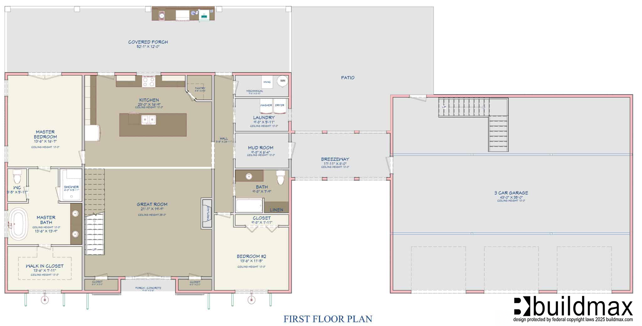 All house plans on buildmax.com were designed to accommodate the local codes and requirements at the time & location the original house was designed, these may not fall directly in line with your local regulations, and it is your responsibility to follow up with your local building department to ensure compliance is accomplished. Photo and video renditions may differ from the actual plans based on many factors, including truss layout, exterior and interior finishes. All stock, custom or modified plan purchases are final, and we cannot refund or exchange any plan after date of purchase.