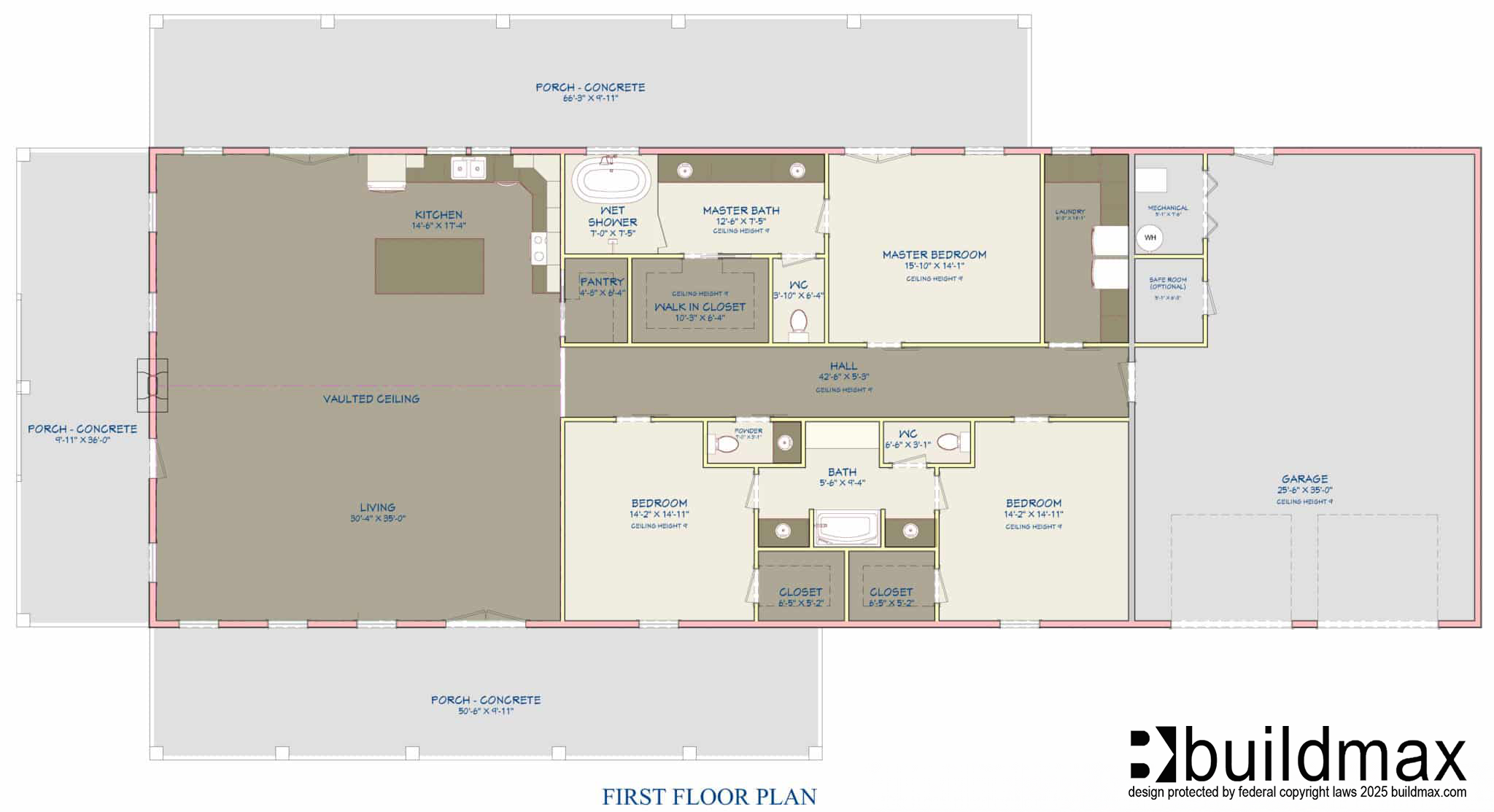 All house plans on buildmax.com were designed to accommodate the local codes and requirements at the time & location the original house was designed, these may not fall directly in line with your local regulations, and it is your responsibility to follow up with your local building department to ensure compliance is accomplished. Photo and video renditions may differ from the actual plans based on many factors, including truss layout, exterior and interior finishes. All stock, custom or modified plan purchases are final, and we cannot refund or exchange any plan after date of purchase.