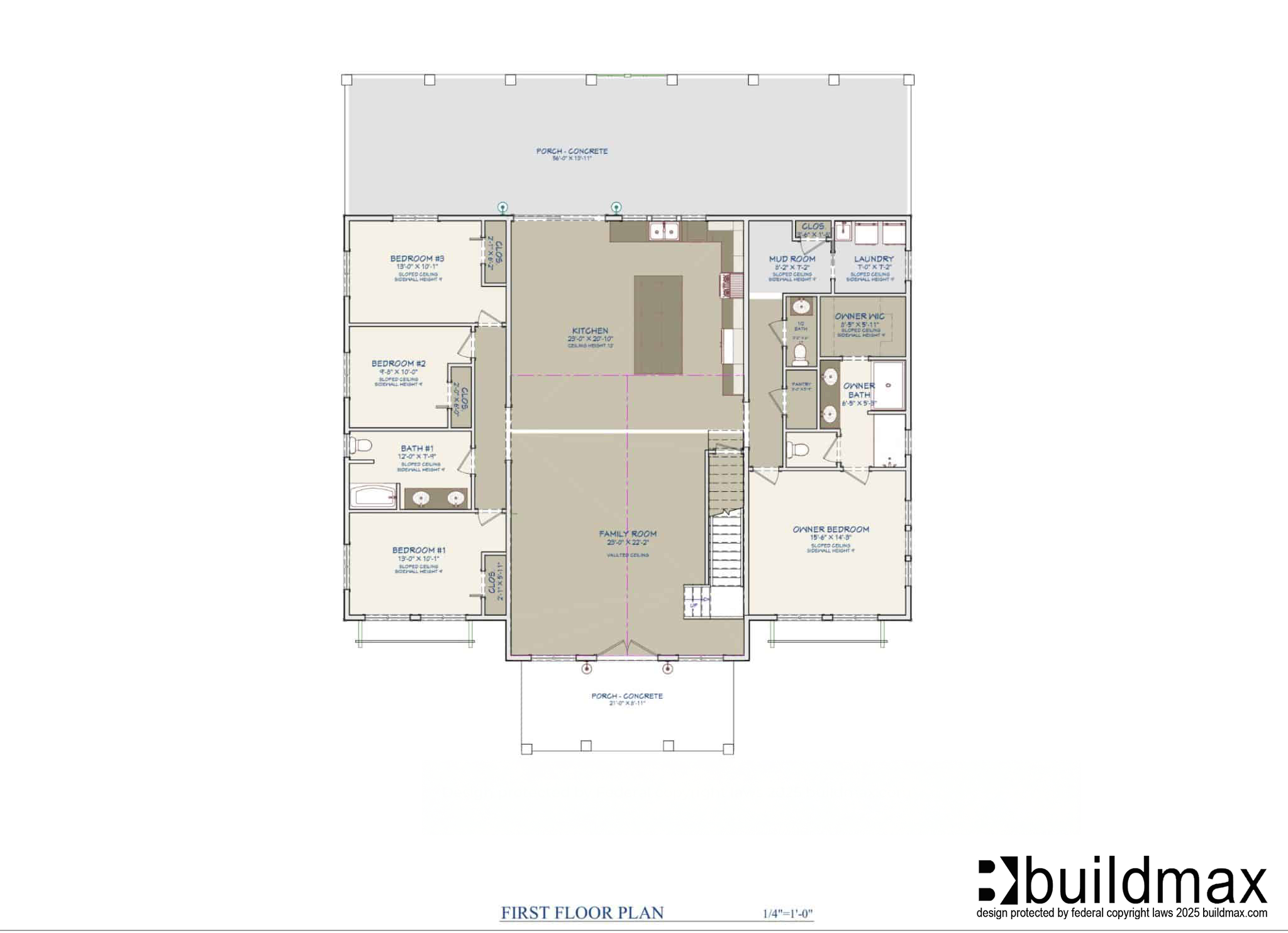 All house plans on buildmax.com were designed to accommodate the local codes and requirements at the time & location the original house was designed, these may not fall directly in line with your local regulations, and it is your responsibility to follow up with your local building department to ensure compliance is accomplished. Photo and video renditions may differ from the actual plans based on many factors, including truss layout, exterior and interior finishes. All stock, custom or modified plan purchases are final, and we cannot refund or exchange any plan after date of purchase.