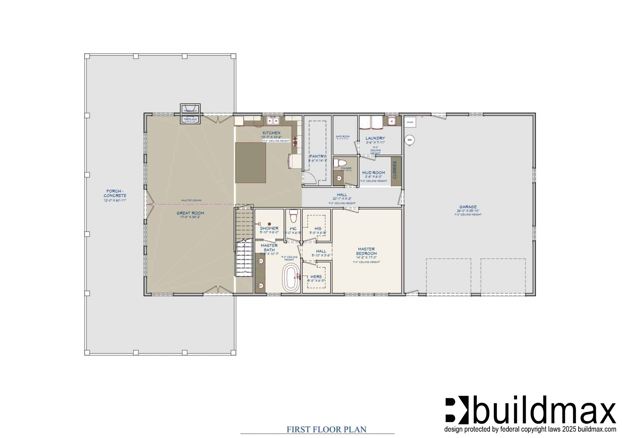 All house plans on buildmax.com were designed to accommodate the local codes and requirements at the time & location the original house was designed, these may not fall directly in line with your local regulations, and it is your responsibility to follow up with your local building department to ensure compliance is accomplished. Photo and video renditions may differ from the actual plans based on many factors, including truss layout, exterior and interior finishes. All stock, custom or modified plan purchases are final, and we cannot refund or exchange any plan after date of purchase.