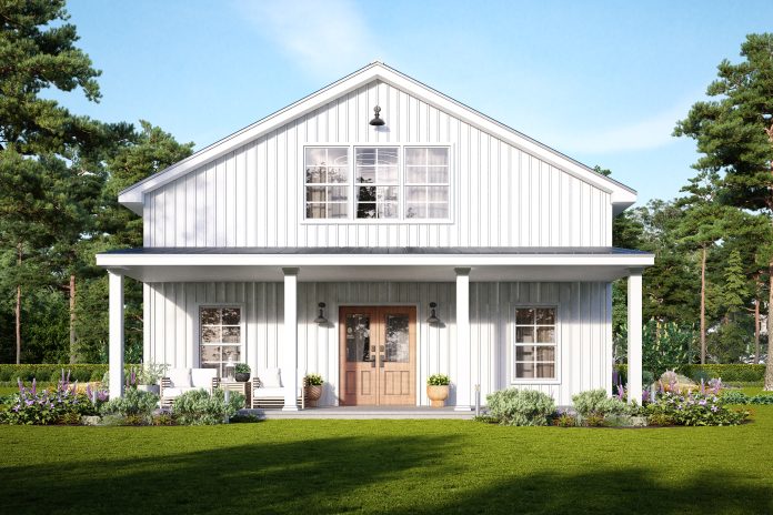 • BM2880 โ€“ While not exactly a Farmhouse, this Barndominium sports a spacious 3-bed/2.5-bath design that blends traditional farmhouse charm with a steel-ready frame and massive great room for entertaining.