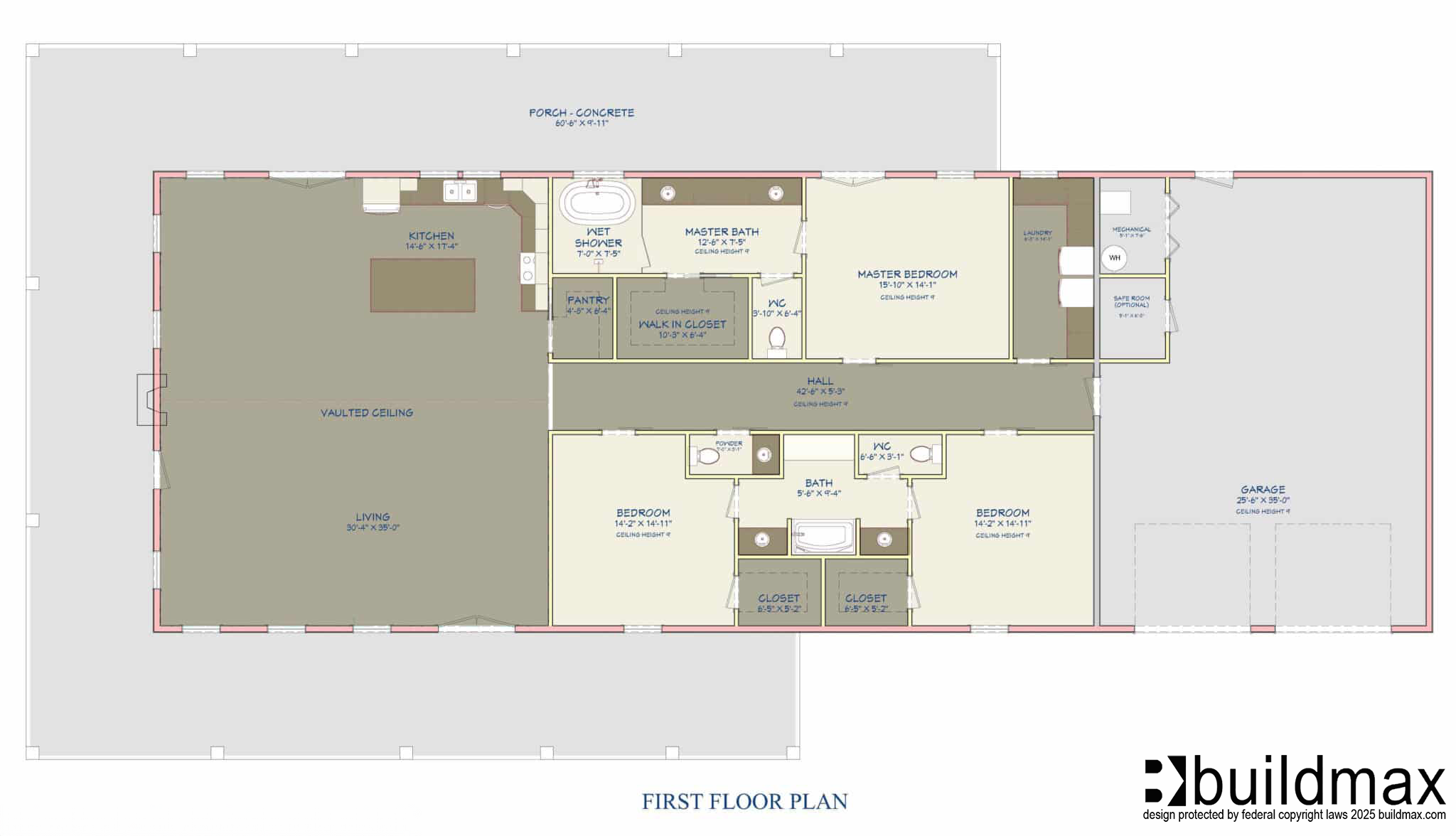 All house plans on buildmax.com were designed to accommodate the local codes and requirements at the time & location the original house was designed, these may not fall directly in line with your local regulations, and it is your responsibility to follow up with your local building department to ensure compliance is accomplished. Photo and video renditions may differ from the actual plans based on many factors, including truss layout, exterior and interior finishes. All stock, custom or modified plan purchases are final, and we cannot refund or exchange any plan after date of purchase.
